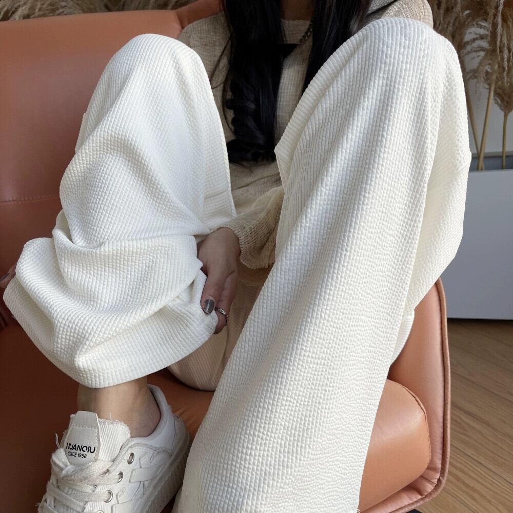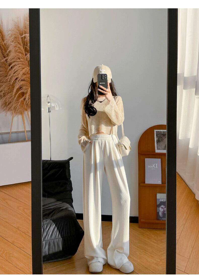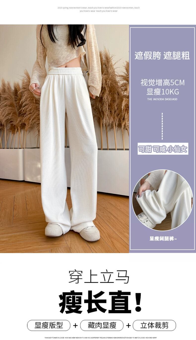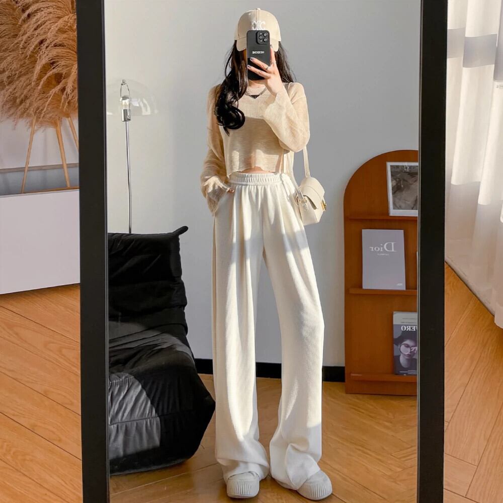 ホワイトカジュアルパンツ女性の2024年春と秋の新しいストレートレッグフロアレングスパンツは、ドレープ感があり、高級感があり、スリムなハイウエストワイドレッグパンツです スプリング 春物 オータム 秋物 7460069452127750 | framboise21
