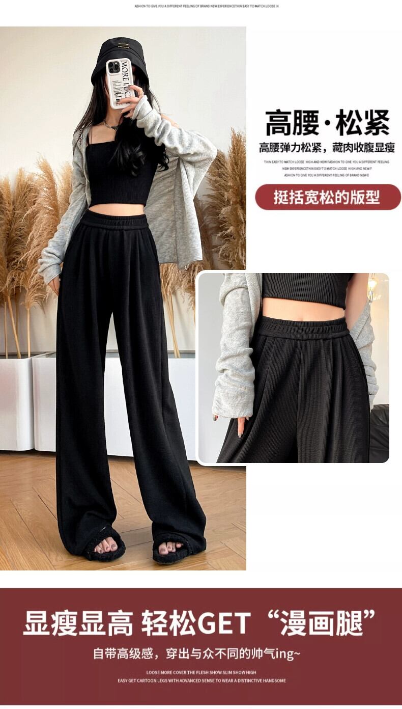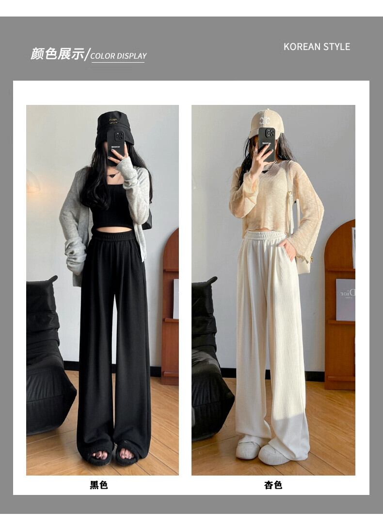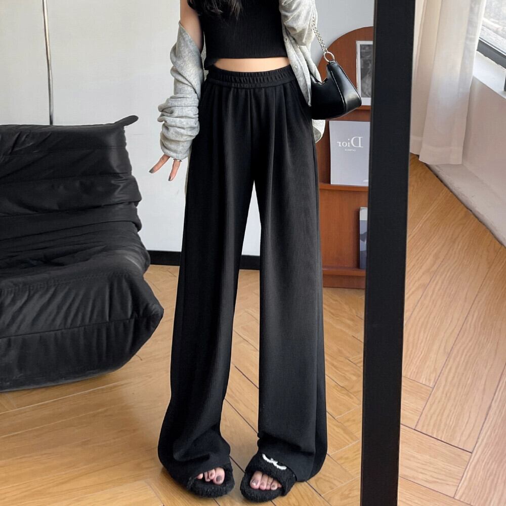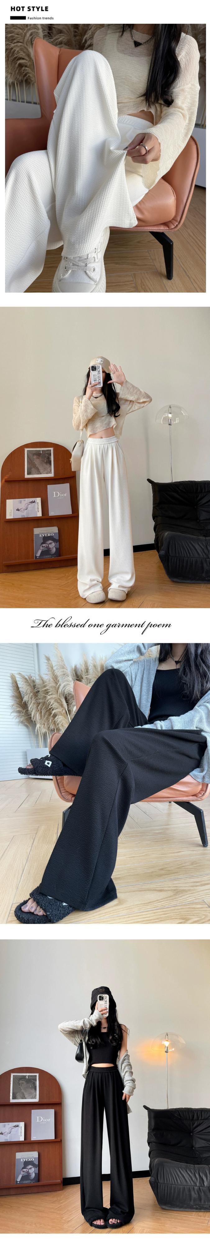 ホワイトカジュアルパンツ女性の2024年春と秋の新しいストレートレッグフロアレングスパンツは、ドレープ感があり、高級感があり、スリムなハイウエストワイドレッグパンツです スプリング 春物 オータム 秋物 7460069452127750 | framboise21