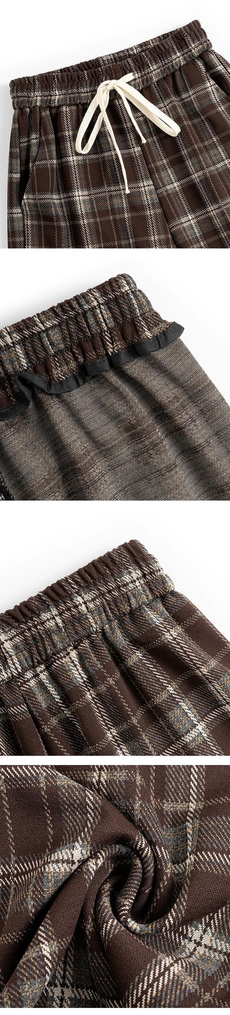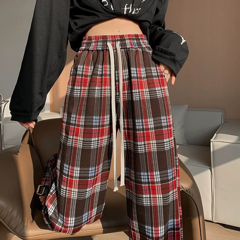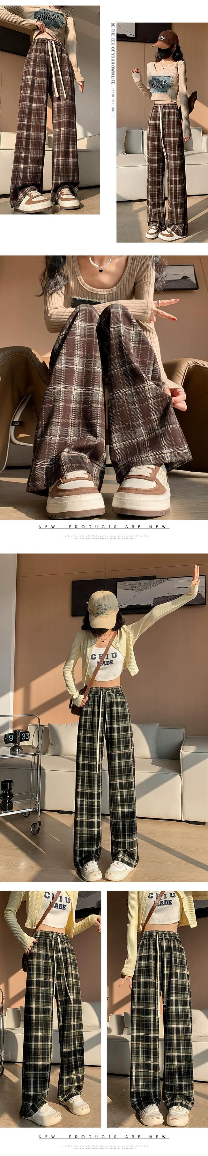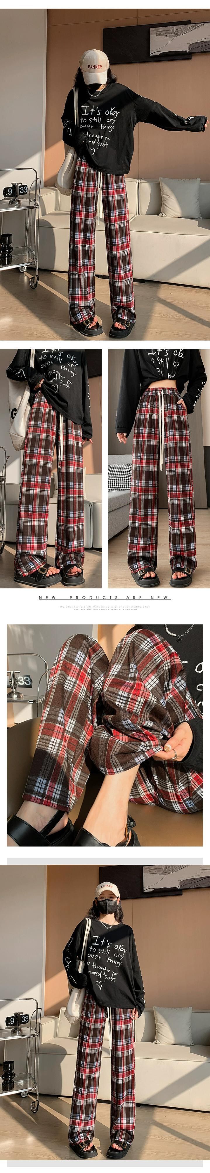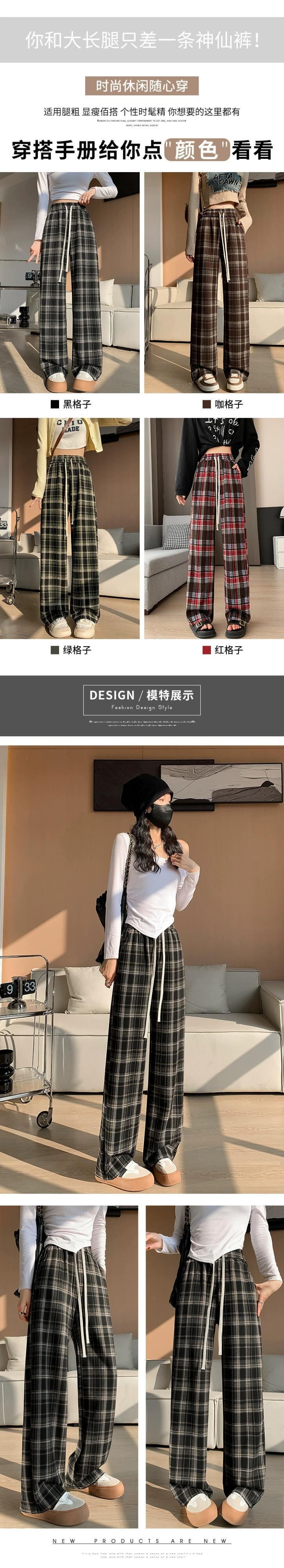 細いチェック柄ワイドレッグパンツレディース、春と秋のアメリカンレトロストレートレッグカジュアルパンツ、ハイウエスト、スリム、フロアレングスパンツ スプリング 春物 オータム 秋物 7460014023010140 | framboise21