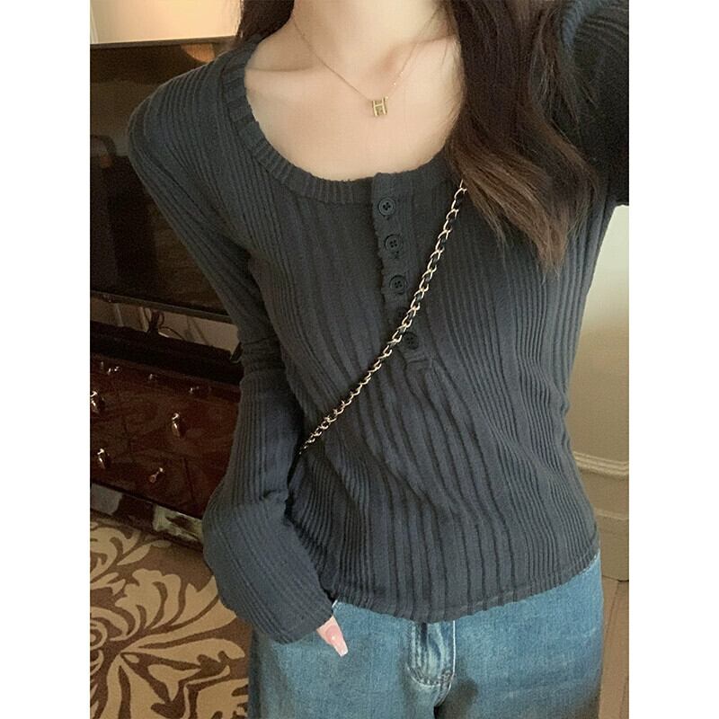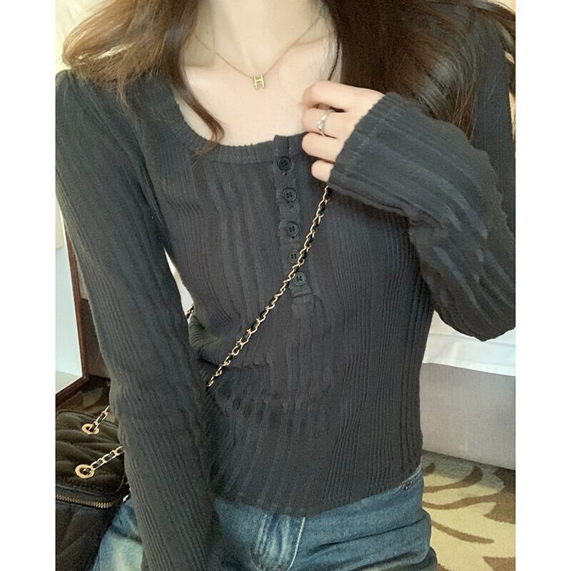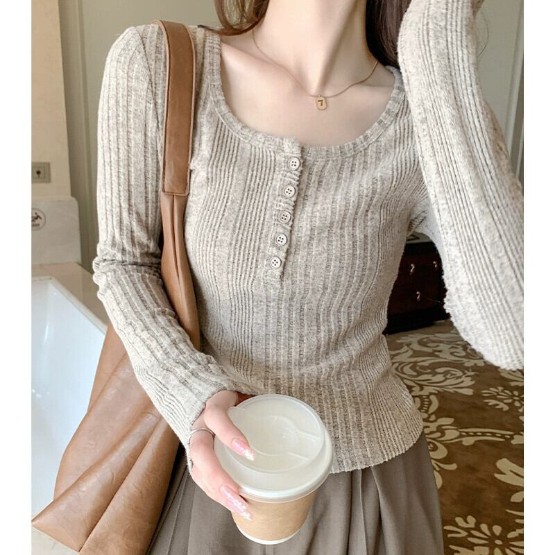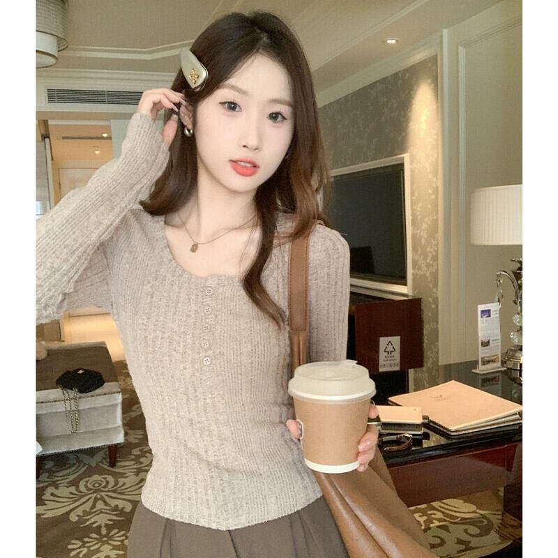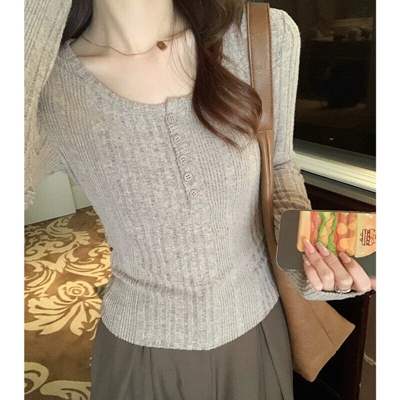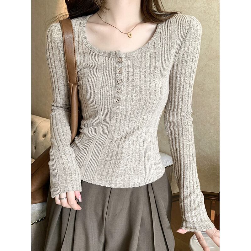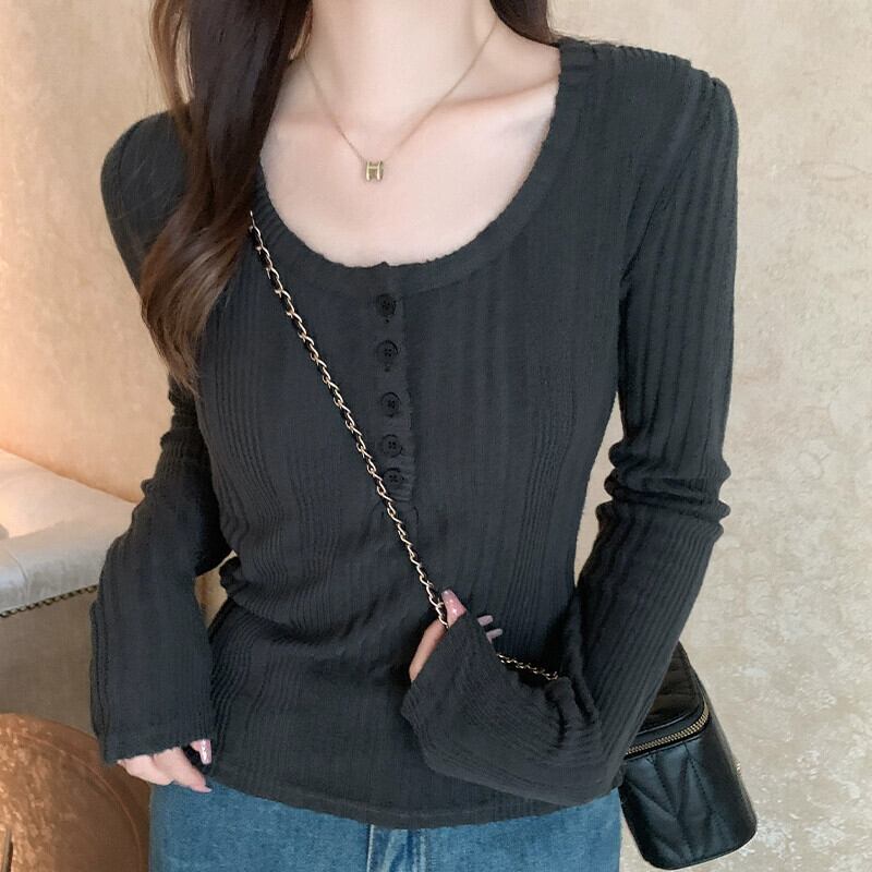 鎖骨露出ローネックボトムシャツ女性、2024年春秋の新しいスタイルのショートトップ、ファッショナブルでスリムフィットの長袖Tシャツ ロング スプリング 春物 オータム 秋物 7460076793239204 | framboise21