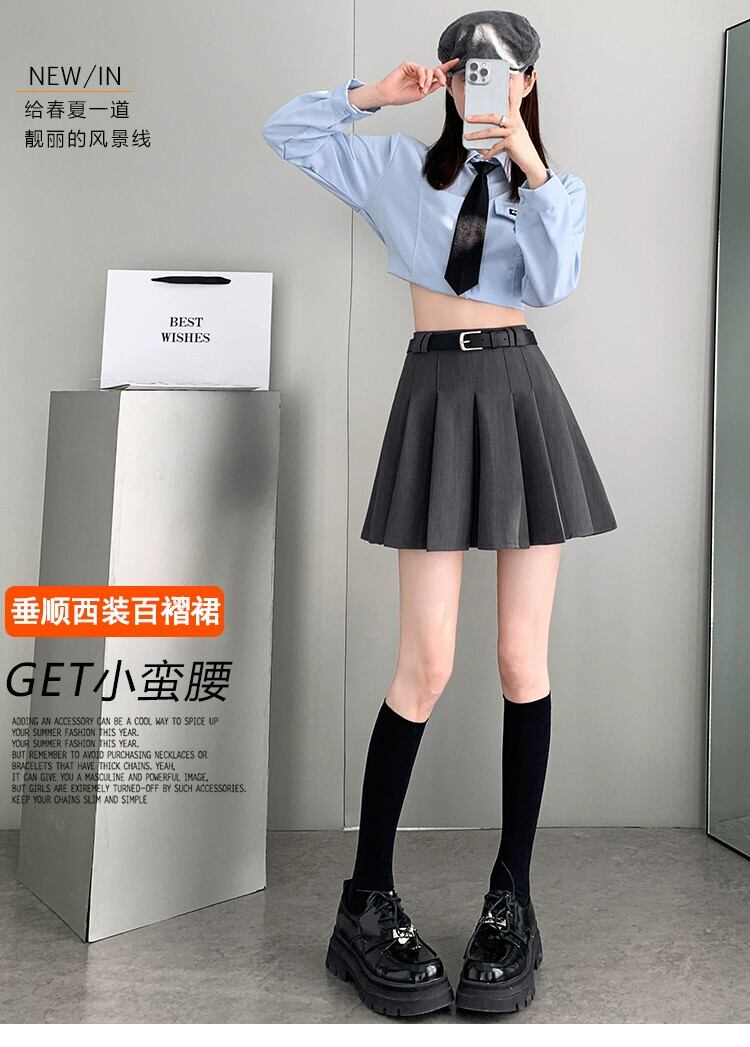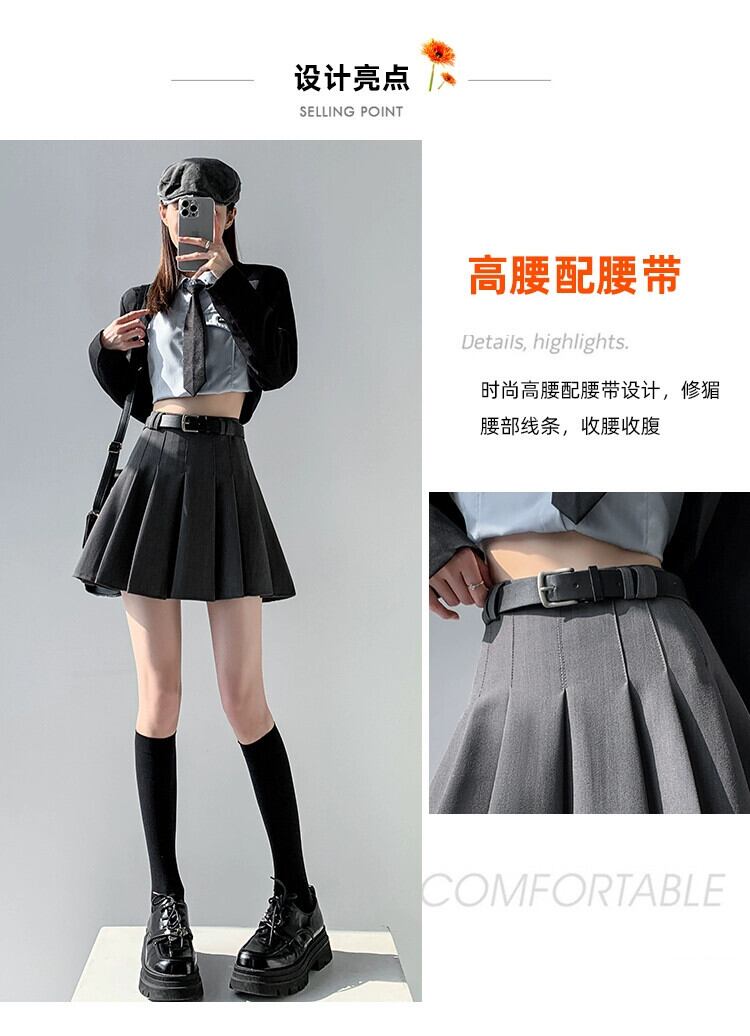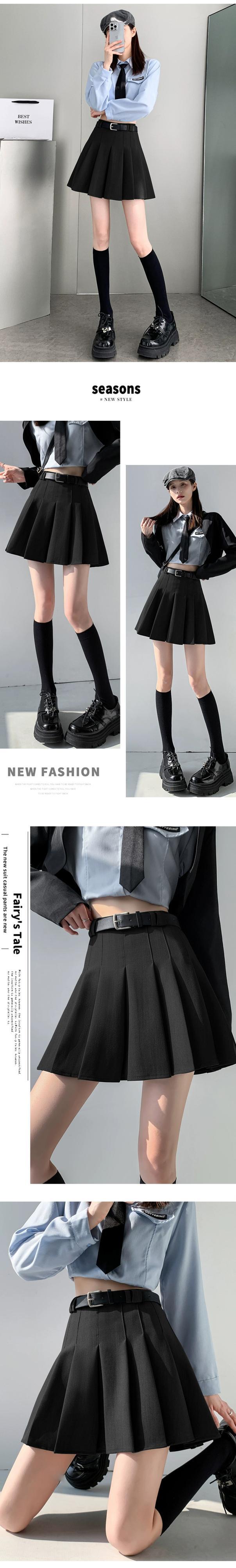 ブラックスーツスカートレディース、春と秋のカレッジスタイルJKプリーツスカート小柄な人、スリムで多用途、ハイウエストAラインスカート スプリング 春物 オータム 秋物 7460090957412895 | framboise21