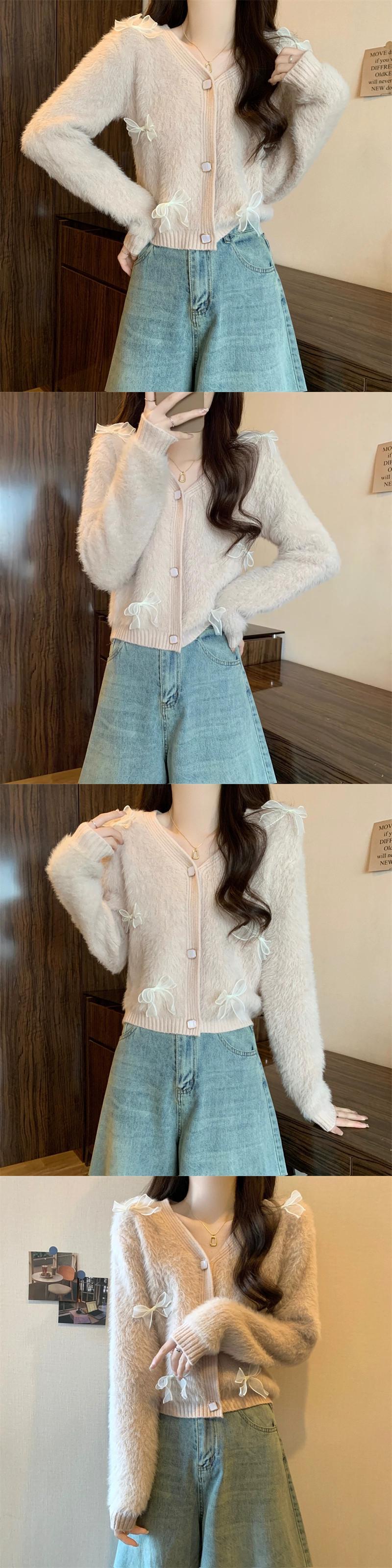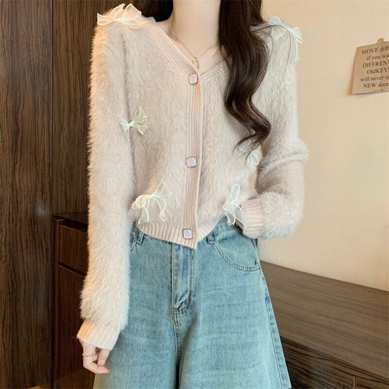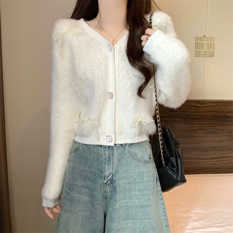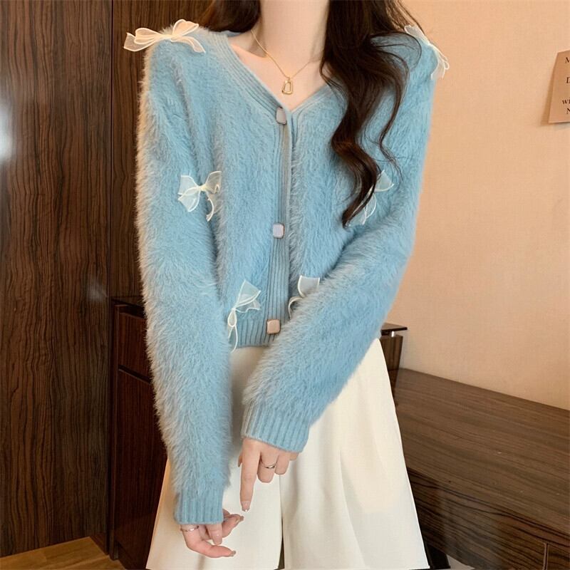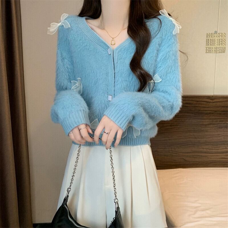 モヘアリボンセータージャケット女性冬のファッション緩い怠惰なスタイルアウターウェア肥厚 V ネックニットカーディガン ウィンター 冬物 Vネック 7460066990398564 | framboise21