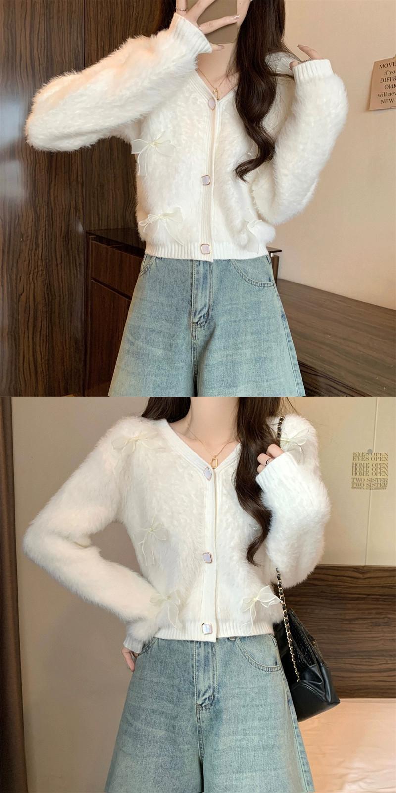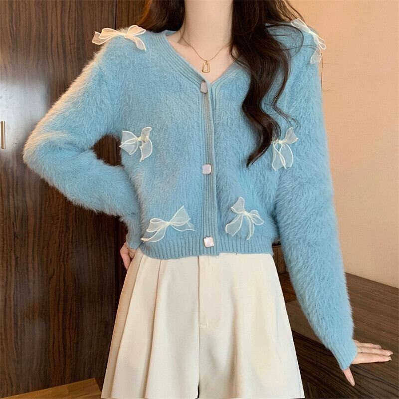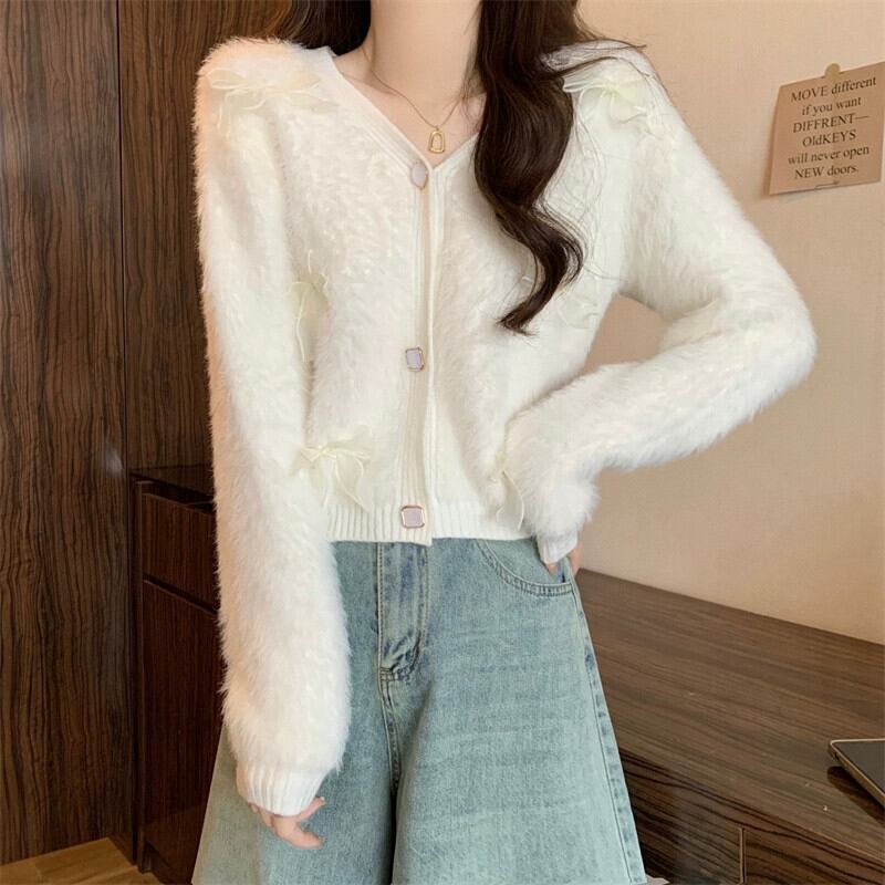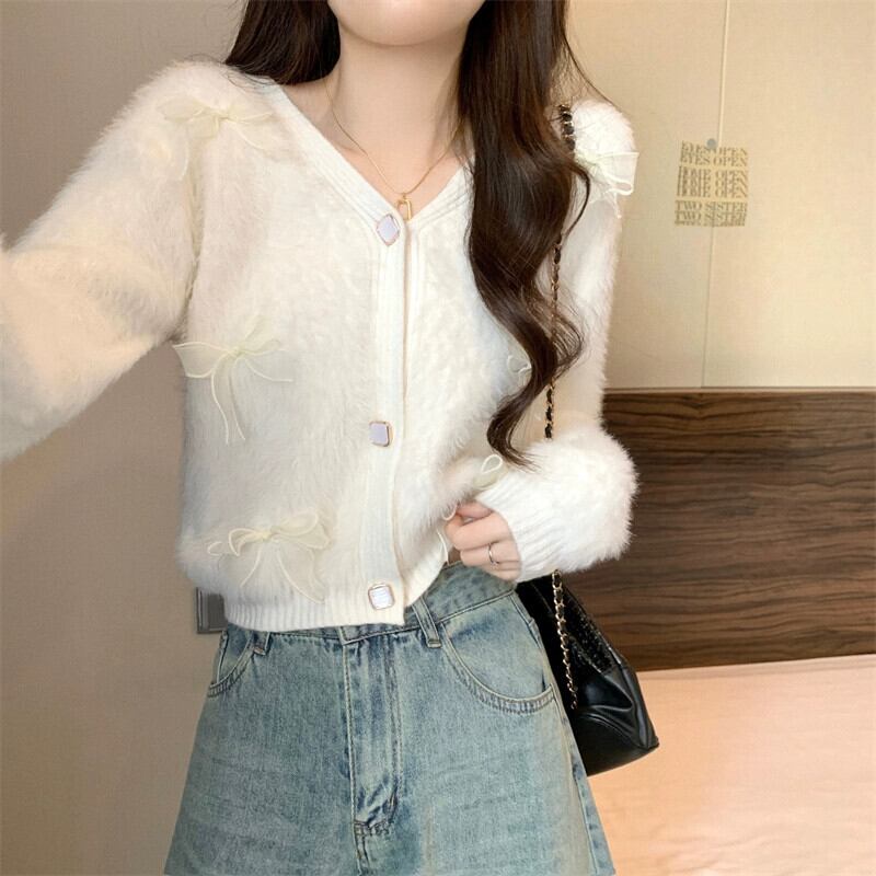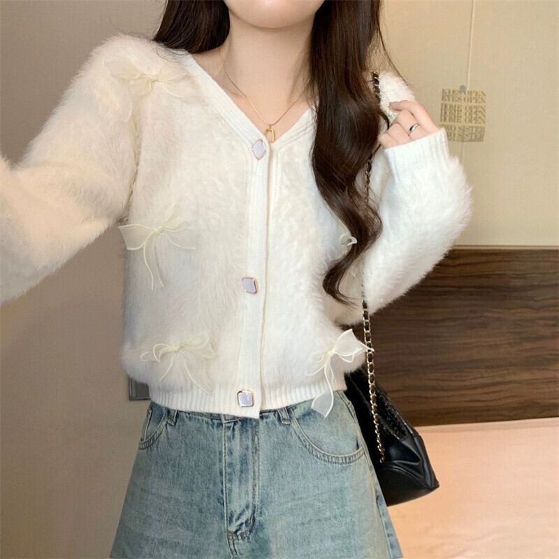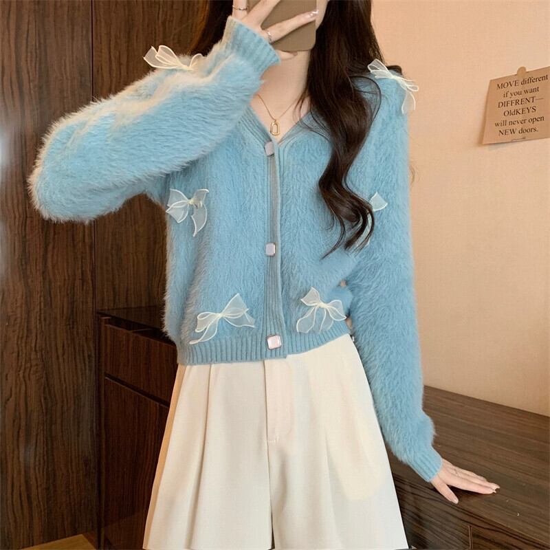 モヘアリボンセータージャケット女性冬のファッション緩い怠惰なスタイルアウターウェア肥厚 V ネックニットカーディガン ウィンター 冬物 Vネック 7460066990398564 | framboise21