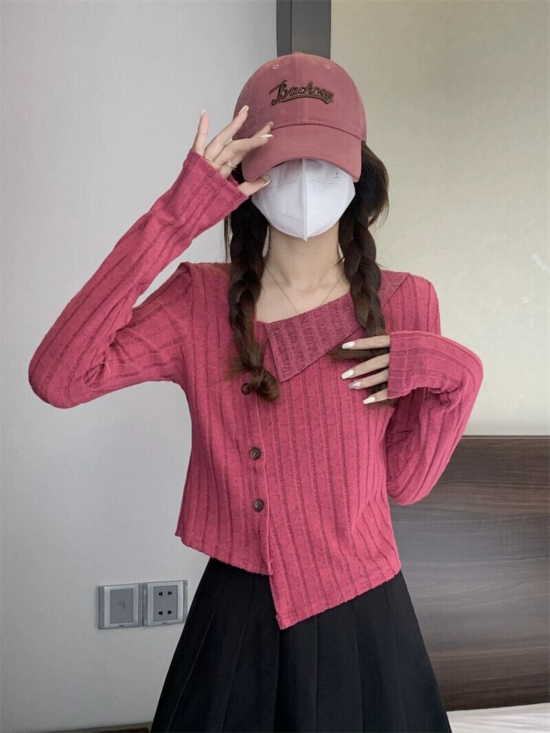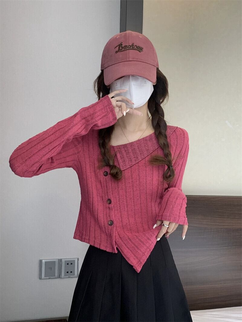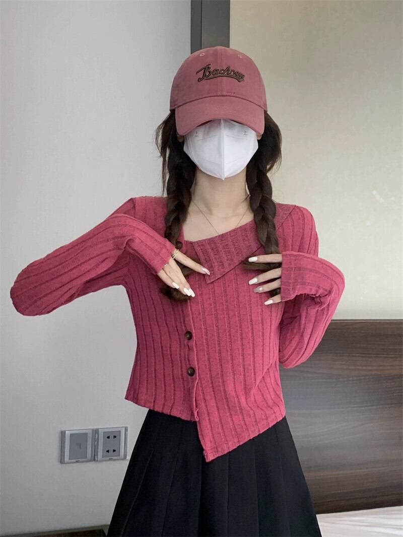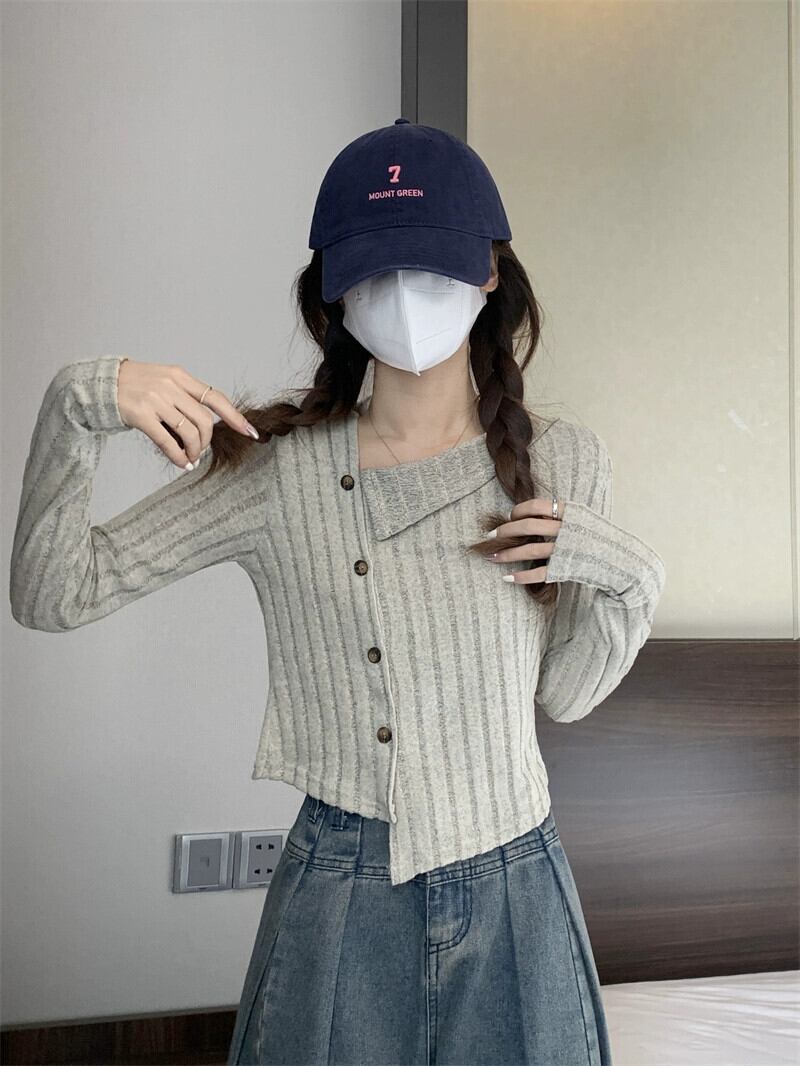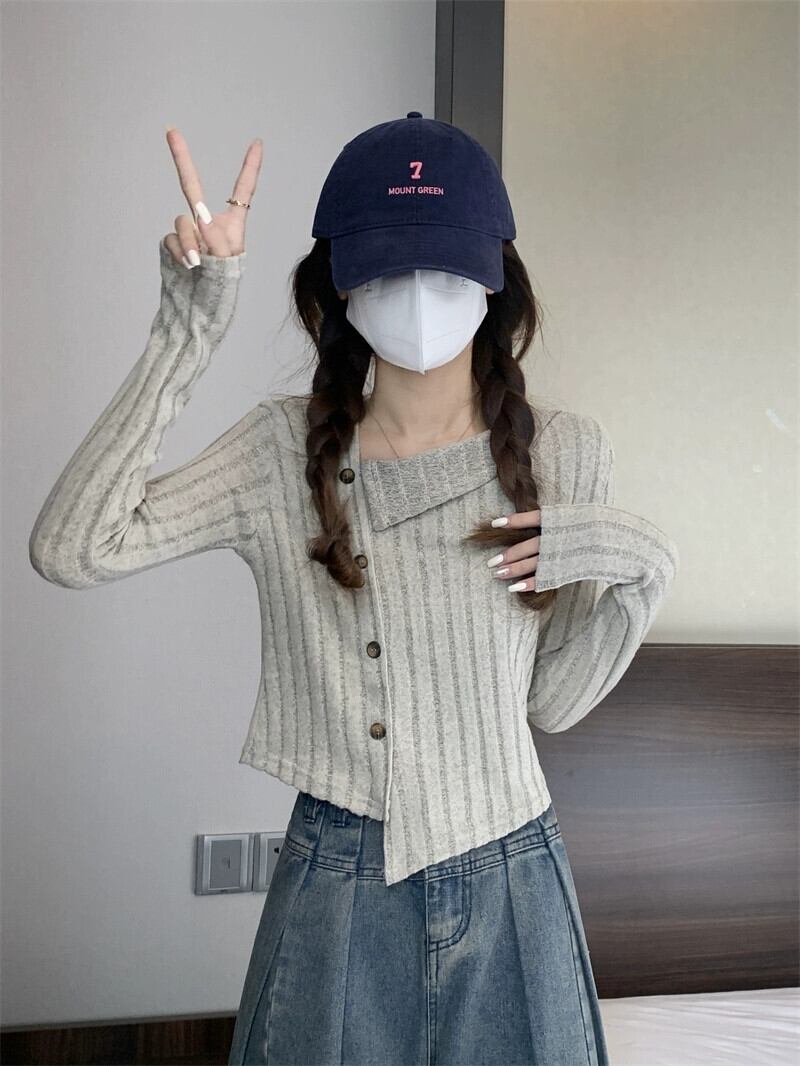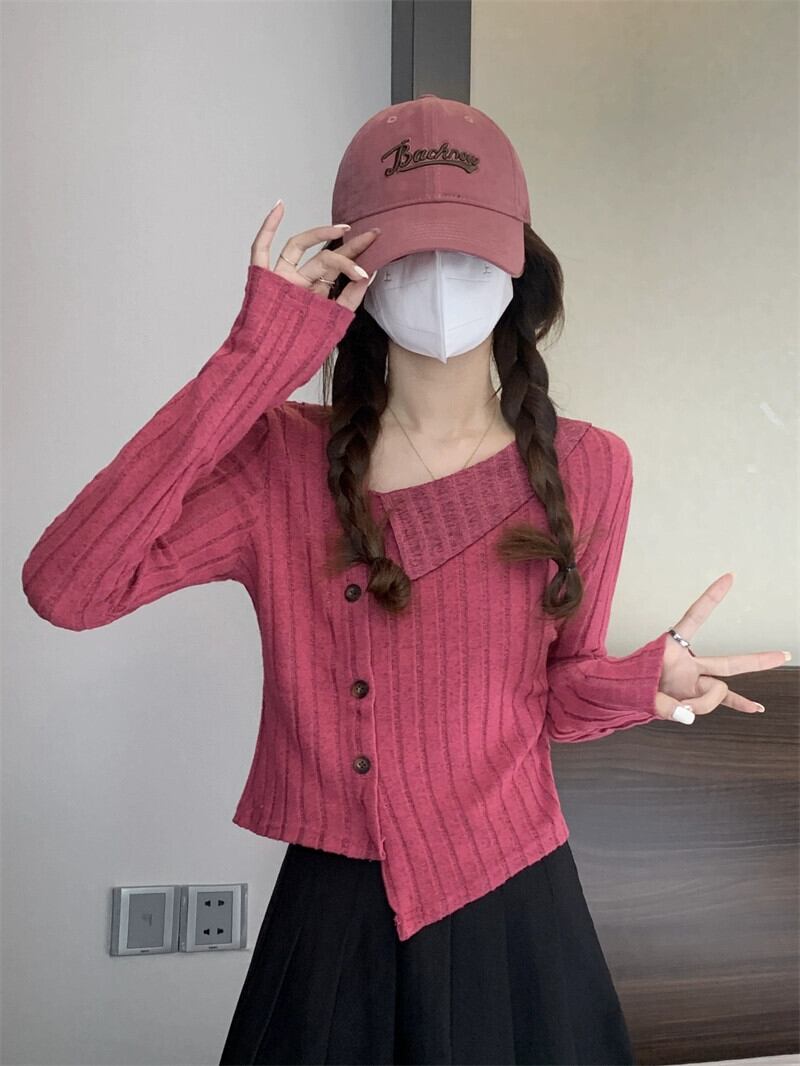 不規則なショート長袖トップス女性 2024 春の新しいファッションデザインシックなスリムフィット多目的 V ネック Tシャツ ロング スプリング 春物 Vネック 7460023254505583 | framboise21