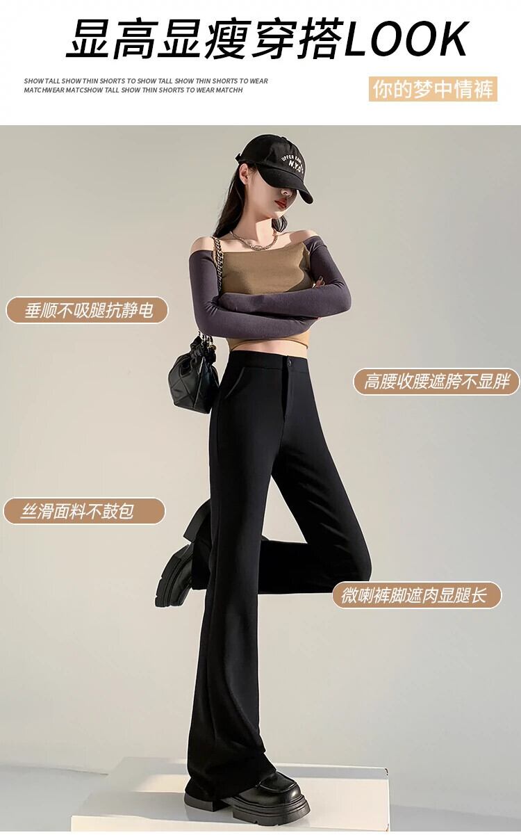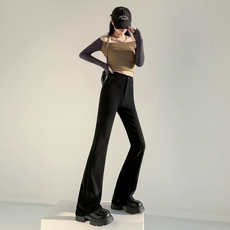 黒のワイドレッグスーツパンツの女性春と秋の新しいスタイルのハイウエストフレアパンツ小人ドレープフロアレングスストレートカジュアルパンツ レッド ブラック スプリング 春物 オータム 秋物 7460051780850219 | framboise21
