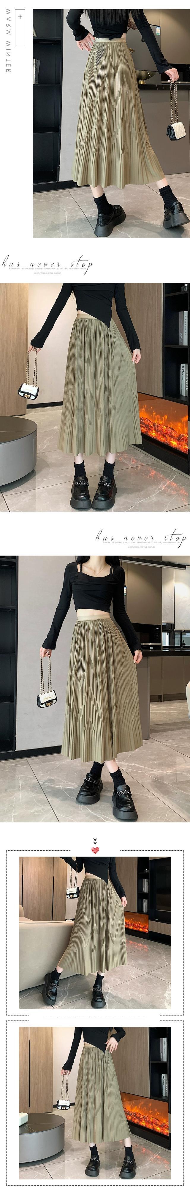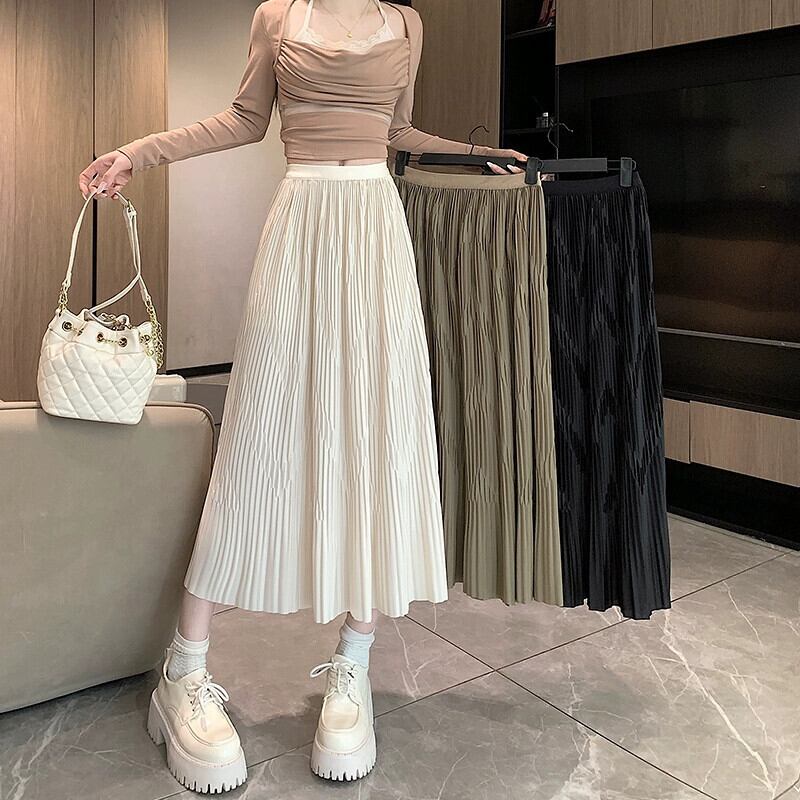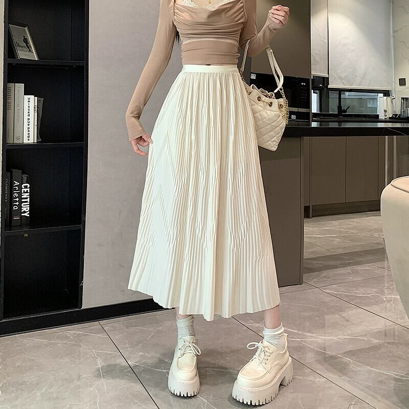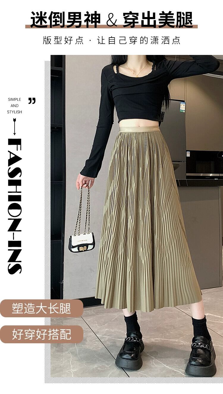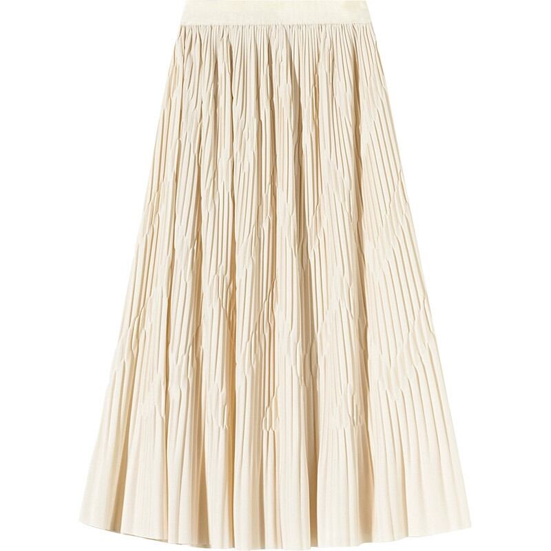 アプリコットツイルスカート レディース 春秋 小柄 ヒップカバー 着痩せ ハイウエスト ドレープAライン ミドル丈 プリーツスカート スプリング 春物 オータム 秋物 7460059603778394 | framboise21