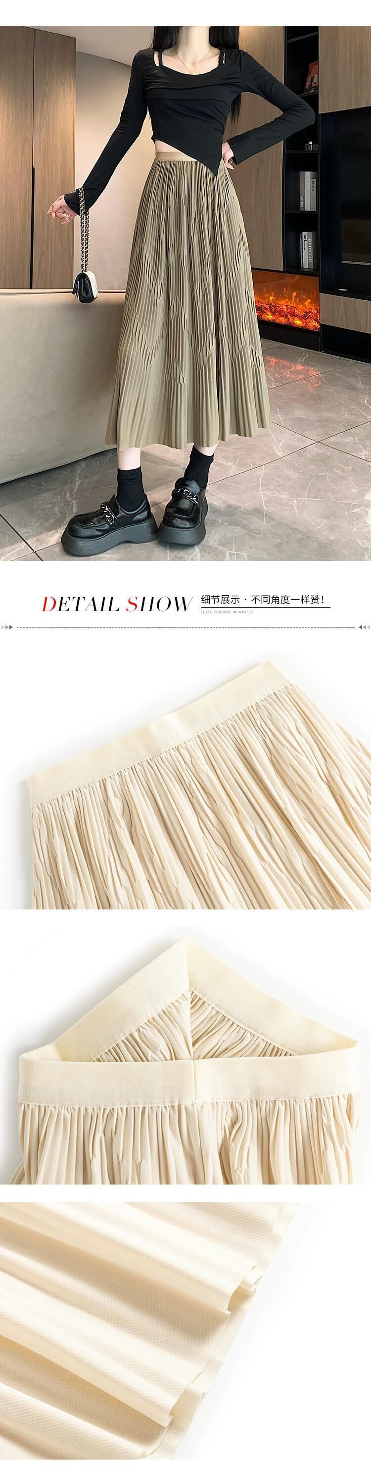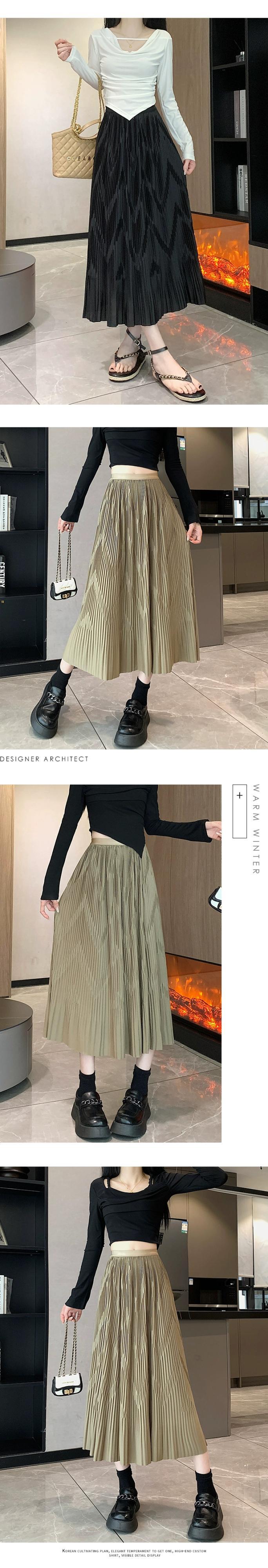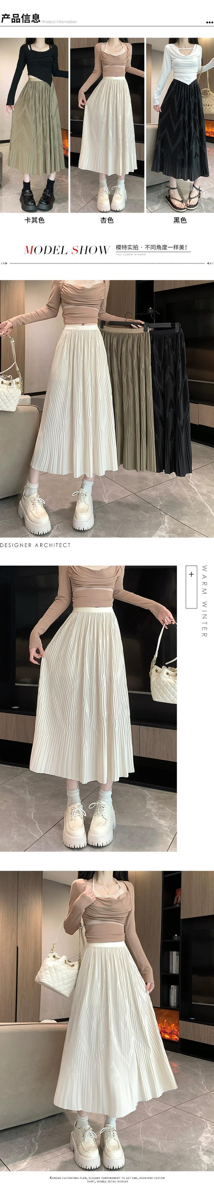 アプリコットツイルスカート レディース 春秋 小柄 ヒップカバー 着痩せ ハイウエスト ドレープAライン ミドル丈 プリーツスカート スプリング 春物 オータム 秋物 7460059603778394 | framboise21